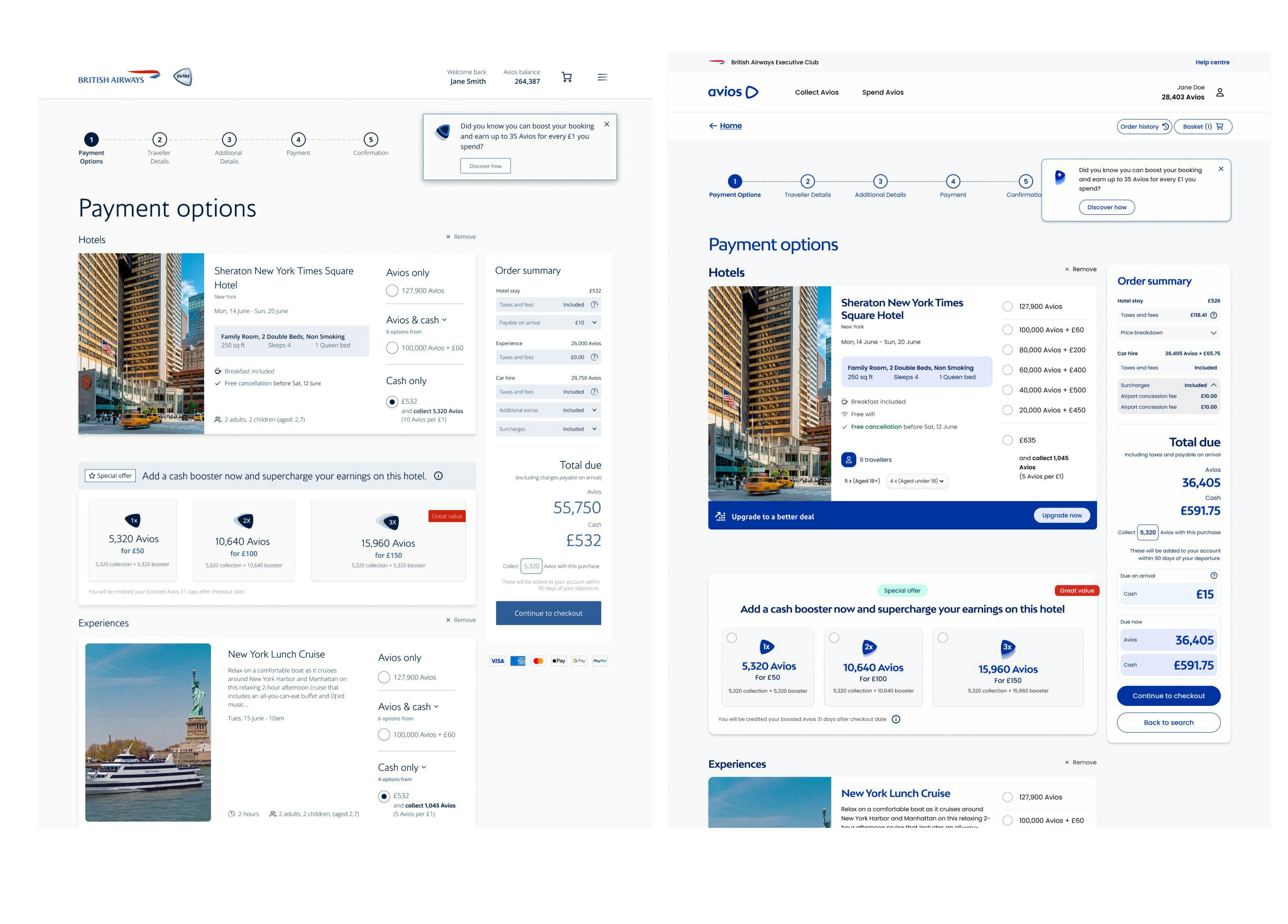 Designs for the balance booster product for British Airways, and later rebranded for Avios