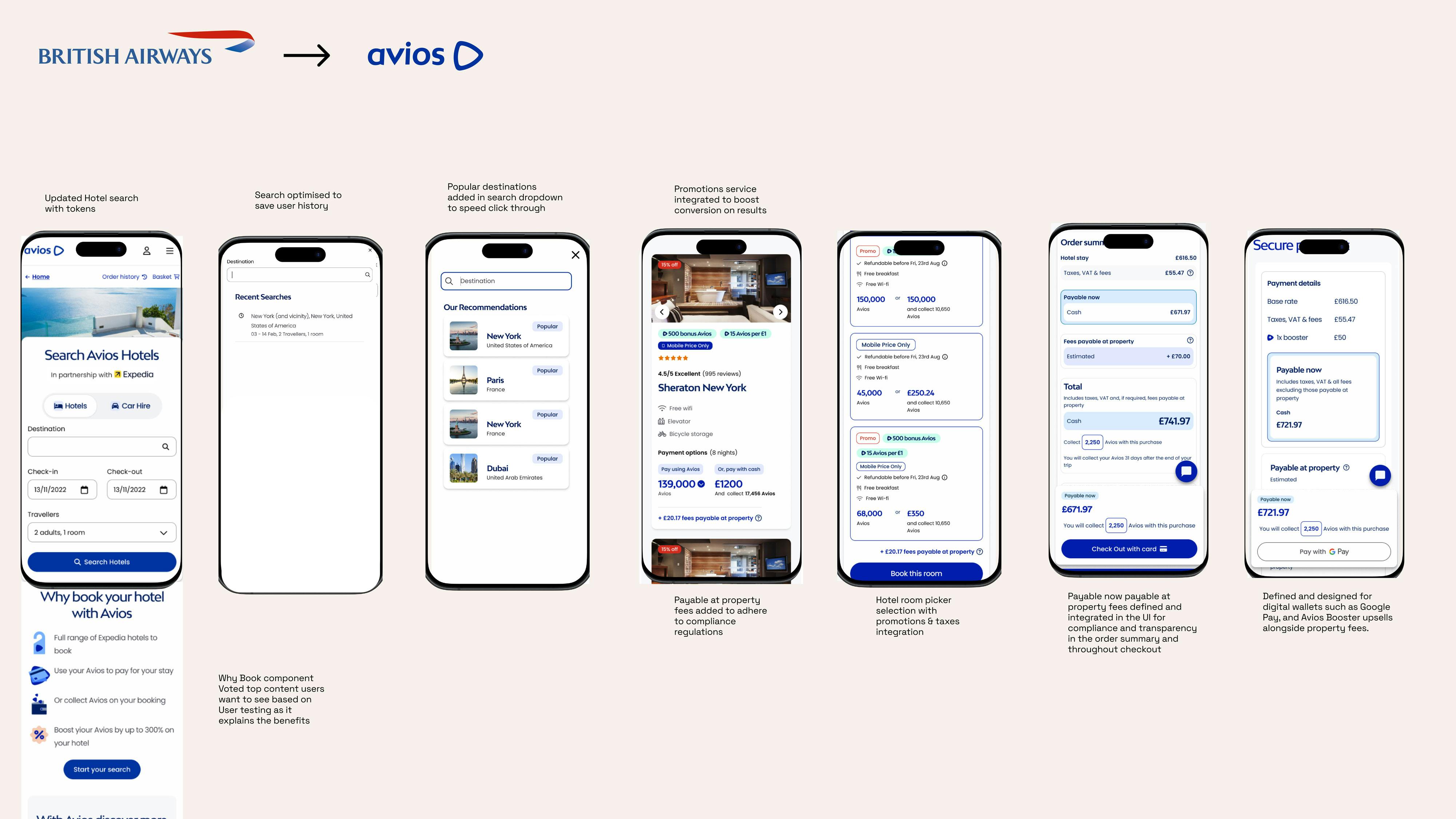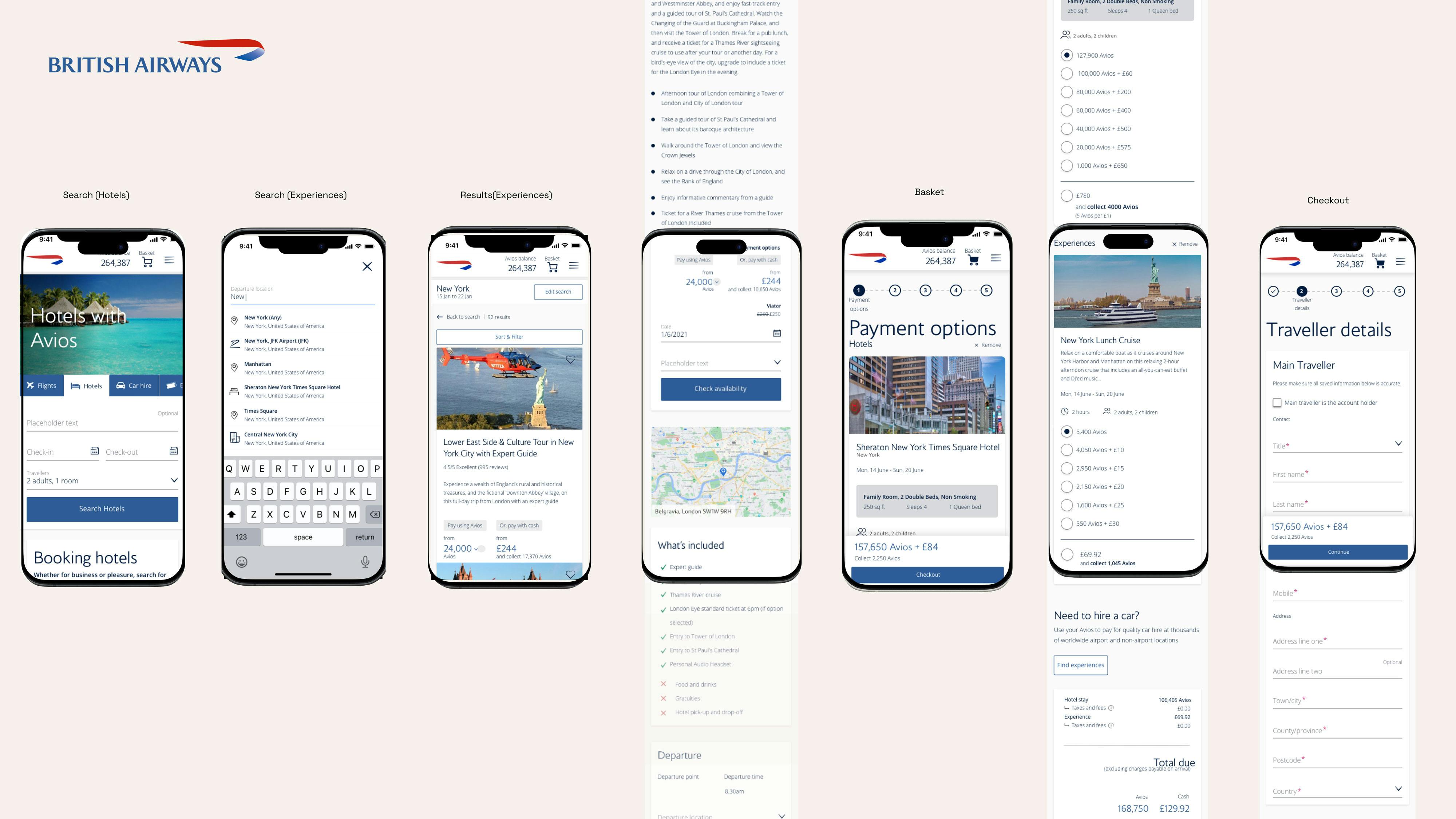 Projects includes end to end branded British Airways flows and rebrands for Avios. Defining logic and integration for a promotions service and a content managed homepage to surface high value inventory.