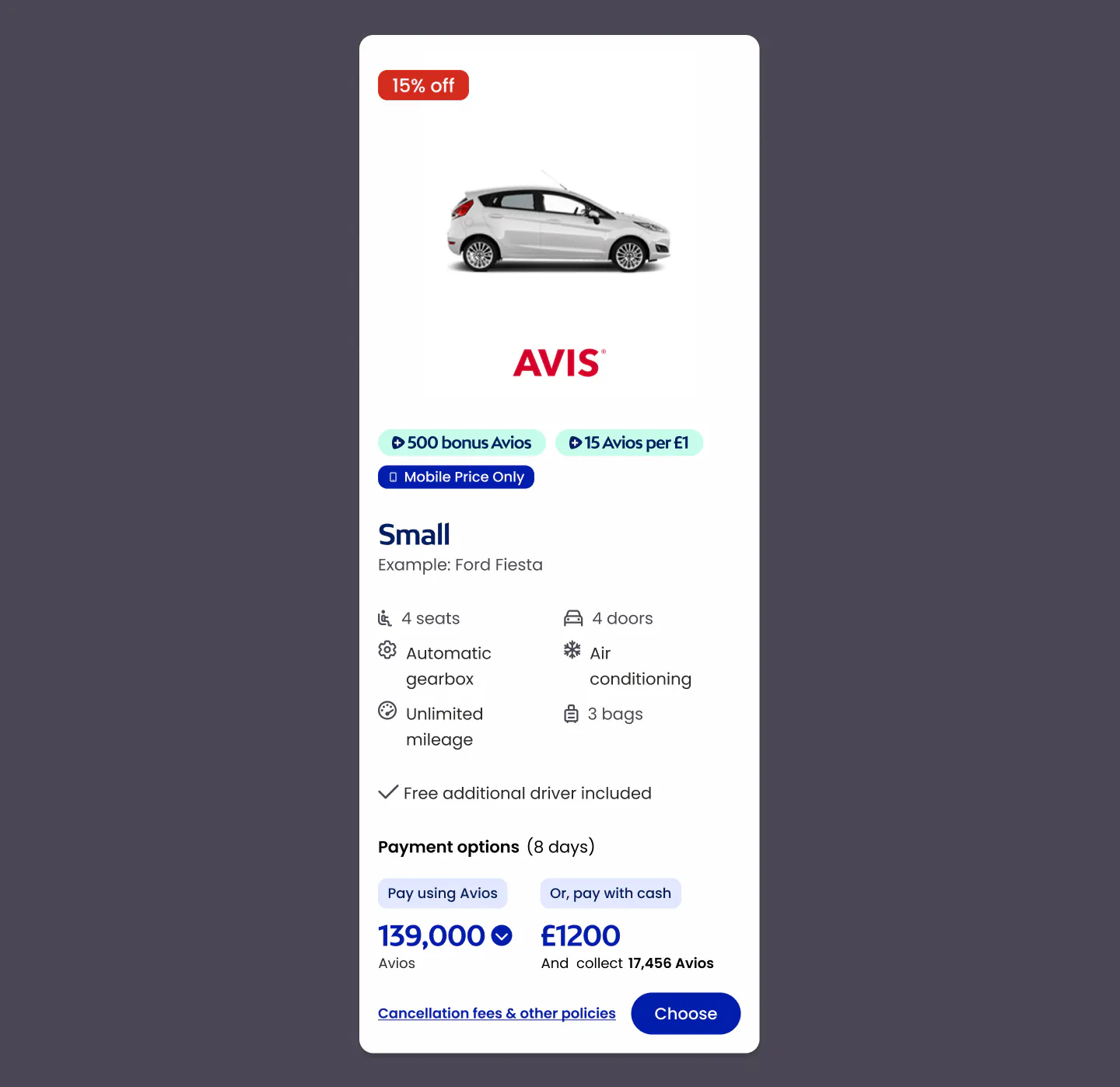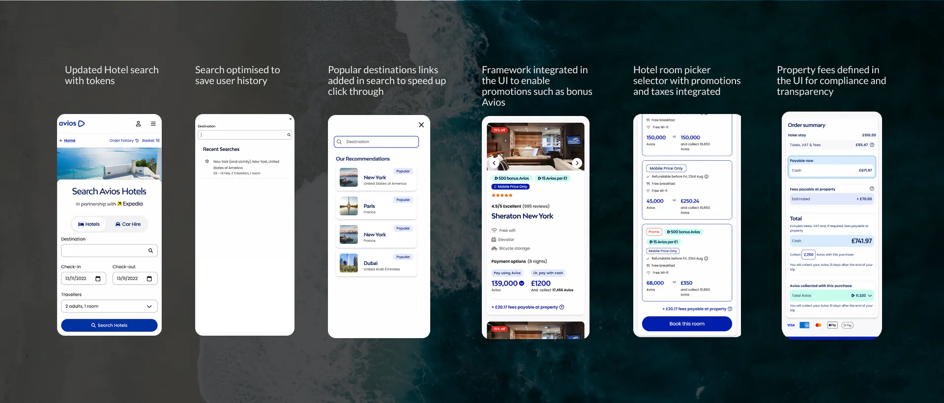 As the platform scaled and BA transitioned to fall under the Avios umbrella, to enable a quick rebrand, I reskinned all British Airways components using the type and colour tokens. As the internal design system team built more global components I updated each component or element in the designs and collaborated and tested with developers at launch to make sure they worked as expected.